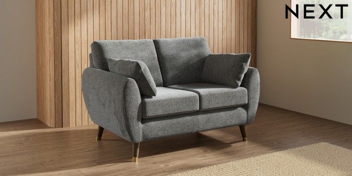 7.3.1 Buy Wilson 2 Seater Small Sofa Chunky Chenille Dark Grey Low Retro Tapered Metal Cap - Mid from the Seasons online shop Click here to use our website with more accessibility support, for example screen readers