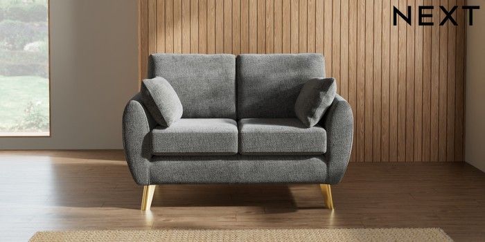 7.3.1 Buy Wilson 2 Seater Small Sofa Chunky Chenille Dark Grey Metal Tapered - Gold from the Seasons online shop Click here to use our website with more accessibility support, for example screen readers