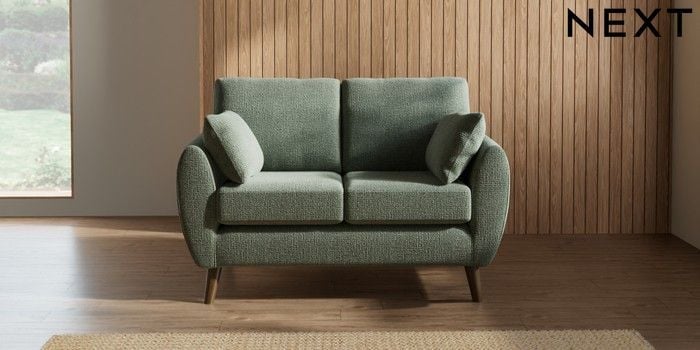 7.3.1 Buy Wilson 2 Seater Small Sofa Chunky Texture Mid Forest Green Retro Tapered - Mid from the Seasons online shop Click here to use our website with more accessibility support, for example screen readers