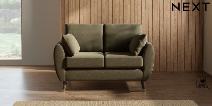 7.3.1 Buy Wilson 2 Seater Small Sofa Fine Chenille Easy Clean Dark Moss Green Low Retro Tapered Metal Cap - Mid from the Seasons online shop Click here to use our website with more accessibility support, for example screen readers