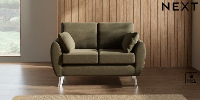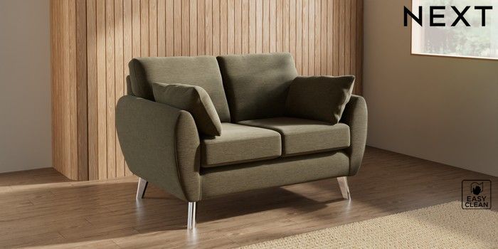 7.3.1 Buy Wilson 2 Seater Small Sofa Fine Chenille Easy Clean Dark Moss Green Metal Tapered - Chrome from the Seasons online shop Click here to use our website with more accessibility support, for example screen readers