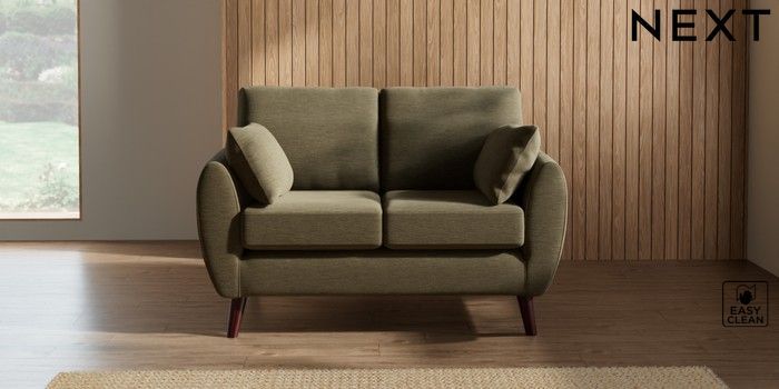7.3.1 Buy Wilson 2 Seater Small Sofa Fine Chenille Easy Clean Dark Moss Green Retro Tapered - Dark Brown from the Seasons online shop Click here to use our website with more accessibility support, for example screen readers