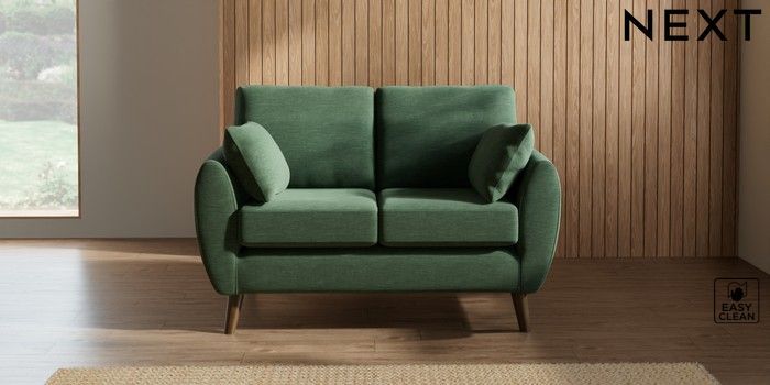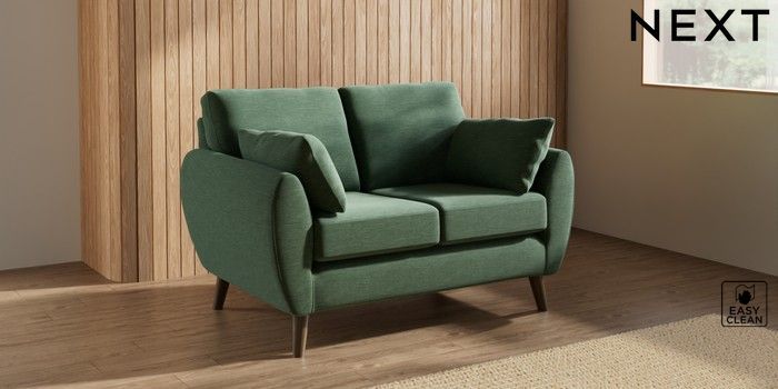 7.3.1 Buy Wilson 2 Seater Small Sofa Fine Chenille Easy Clean Mid Khaki Green Retro Tapered - Mid from the Seasons online shop Click here to use our website with more accessibility support, for example screen readers