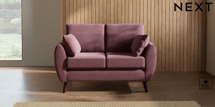7.3.1 Buy Wilson 2 Seater Small Sofa Fine Chenille Easy Clean Mid Mulberry Purple Retro Tapered - Dark Brown from the Seasons online shop
