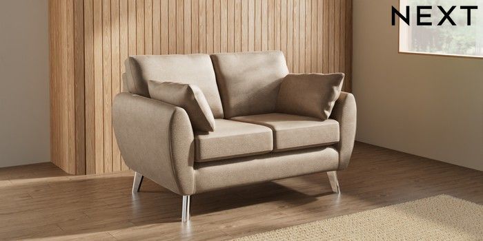 7.3.1 Buy Wilson 2 Seater Small Sofa Luxe Chenille Mid Camel Beige Metal Tapered - Chrome from the Seasons online shop Click here to use our website with more accessibility support, for example screen readers