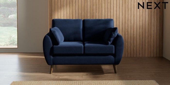 7.3.1 Buy Wilson 2 Seater Small Sofa Luxe Chenille Navy Blue Retro Tapered - Mid from the Seasons online shop Click here to use our website with more accessibility support, for example screen readers