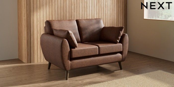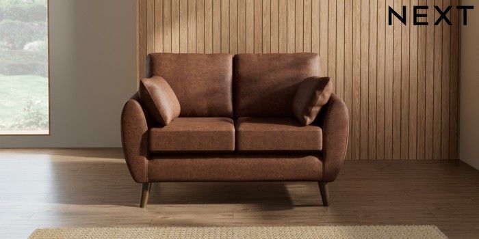 7.3.1 Buy Wilson 2 Seater Small Sofa Monza Faux Leather Easy Clean Chestnut Brown Retro Tapered - Mid from the Seasons online shop