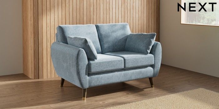 7.3.1 Buy Wilson 2 Seater Small Sofa Plush Chenille Light Blue Low Retro Tapered Metal Cap - Mid from the Seasons online shop Click here to use our website with more accessibility support, for example screen readers