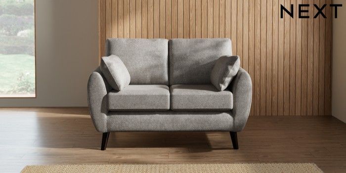 7.2.10 Buy Wilson 2 Seater Small Sofa Plush Chenille Light Grey Retro Tapered - Dark from the Seasons online shop Click here to use our website with more accessibility support, for example screen readers