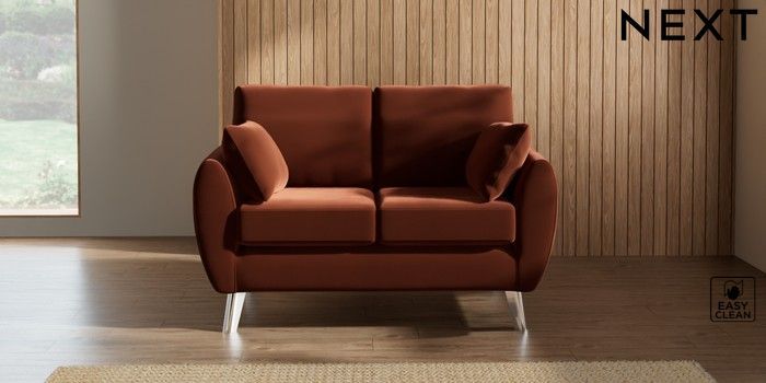 7.3.1 Buy Wilson 2 Seater Small Sofa Plush Velvet Easy Clean Ginger Orange Metal Tapered - Chrome from the Seasons online shop Click here to use our website with more accessibility support, for example screen readers