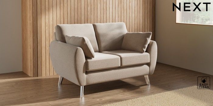 7.3.1 Buy Wilson 2 Seater Small Sofa Tweedy Blend Easy Clean Light Dove Natural Metal Tapered - Chrome from the Seasons online shop