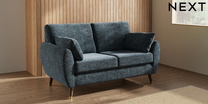 7.3.1 Buy Wilson 2 Seater Sofa Chunky Chenille Dark Navy Blue Low Retro Tapered Metal Cap - Mid from the Seasons online shop Click here to use our website with more accessibility support, for example screen readers