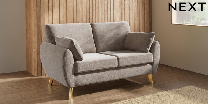 7.3.1 Buy Wilson 2 Seater Sofa Chunky Chenille Light Dove Metal Tapered - Gold from the Seasons online shop Click here to use our website with more accessibility support, for example screen readers