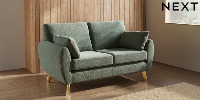 7.3.1 Buy Wilson 2 Seater Sofa Chunky Texture Mid Forest Green Metal Tapered - Gold from the Seasons online shop Click here to use our website with more accessibility support, for example screen readers