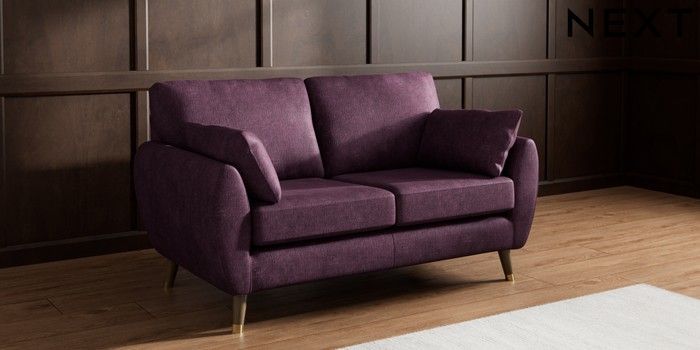 7.3.1 Buy Wilson 2 Seater Sofa Plush Chenille Dark Plum Purple Low Retro Tapered Metal Cap - Mid from the Seasons online shop Click here to use our website with more accessibility support, for example screen readers