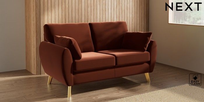 7.3.1 Buy Wilson 2 Seater Sofa Plush Velvet Easy Clean Ginger Orange Metal Tapered - Gold from the Seasons online shop