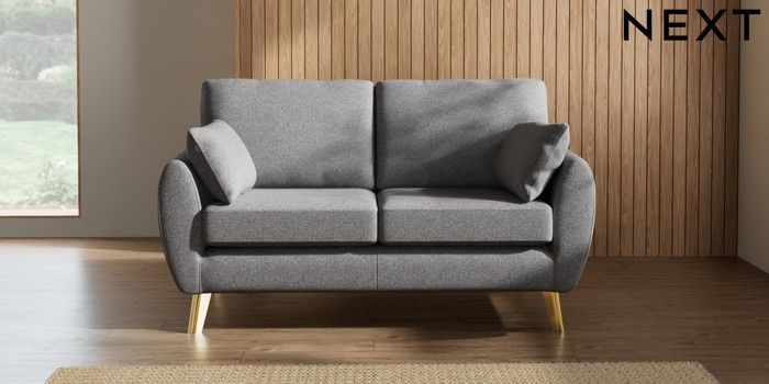 7.3.1 Buy Wilson 2 Seater Sofa Studio Chenille Mid Grey Metal Tapered - Gold from the Seasons online shop Click here to use our website with more accessibility support, for example screen readers