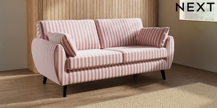 7.3.1 Buy Wilson 3 Seater Small Sofa Bold Chenille Stripe Dark Pink Retro Tapered - Dark from the Seasons online shop Click here to use our website with more accessibility support, for example screen readers