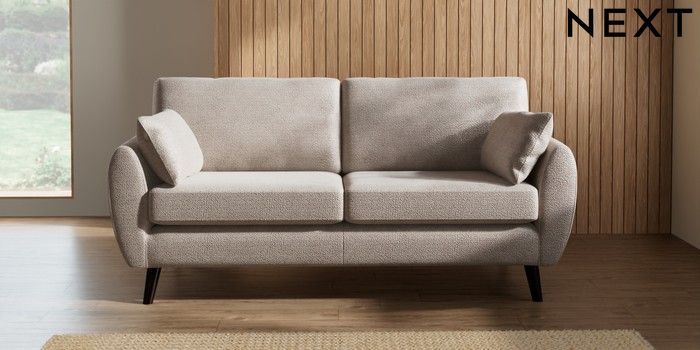 7.3.1 Buy Wilson 3 Seater Small Sofa Boucle Chenille Light Natural Retro Tapered - Dark from the Seasons online shop Click here to use our website with more accessibility support, for example screen readers