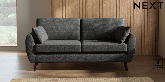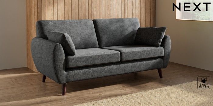 7.3.1 Buy Wilson 3 Seater Small Sofa Boucle Weave Easy Clean Charcoal Grey Retro Tapered - Dark Brown from the Seasons online shop Click here to use our website with more accessibility support, for example screen readers