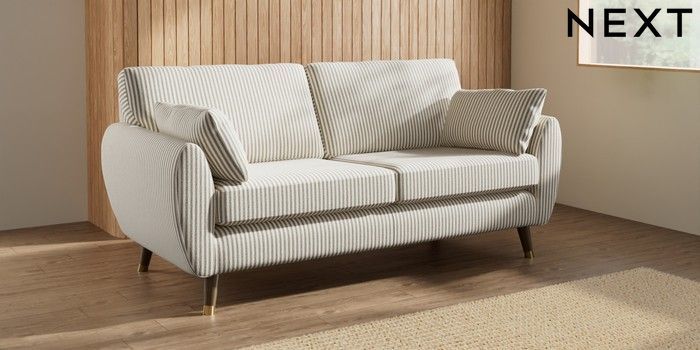7.3.1 Buy Wilson 3 Seater Small Sofa Chenille Stripe Moss Green Low Retro Tapered Metal Cap - Mid from the Seasons online shop Click here to use our website with more accessibility support, for example screen readers