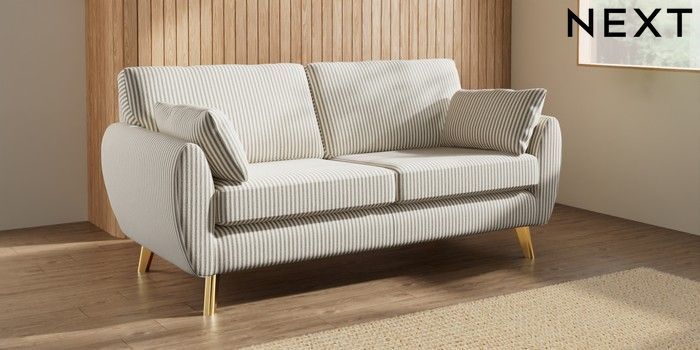 7.3.1 Buy Wilson 3 Seater Small Sofa Chenille Stripe Moss Green Metal Tapered - Gold from the Seasons online shop Click here to use our website with more accessibility support, for example screen readers
