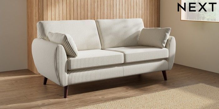 7.3.1 Buy Wilson 3 Seater Small Sofa Chenille Stripe Moss Green Retro Tapered - Dark Brown from the Seasons online shop Click here to use our website with more accessibility support, for example screen readers