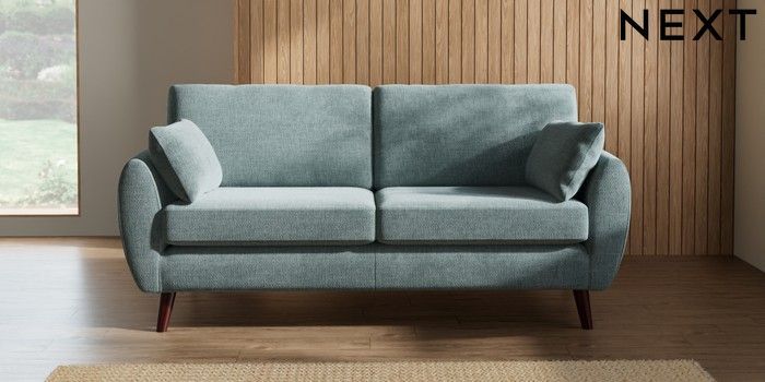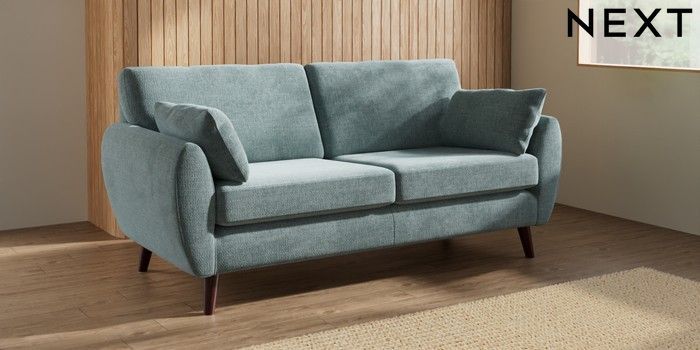 7.3.1 Buy Wilson 3 Seater Small Sofa Chunky Chenille Light Teal Green Retro Tapered - Dark Brown from the Seasons online shop Click here to use our website with more accessibility support, for example screen readers