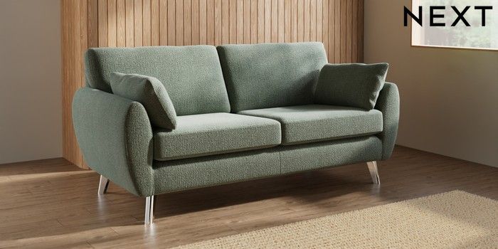 7.3.1 Buy Wilson 3 Seater Small Sofa Chunky Texture Mid Forest Green Metal Tapered - Chrome from the Seasons online shop Click here to use our website with more accessibility support, for example screen readers