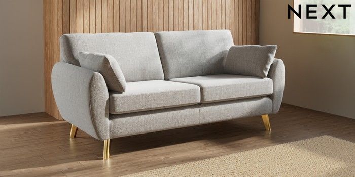 7.3.1 Buy Wilson 3 Seater Small Sofa Chunky Weave Dove Grey Metal Tapered - Gold from the Seasons online shop Click here to use our website with more accessibility support, for example screen readers