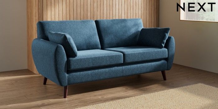 7.3.1 Buy Wilson 3 Seater Small Sofa Cotswold Chenille Dark Blue Retro Tapered - Dark Brown from the Seasons online shop Click here to use our website with more accessibility support, for example screen readers