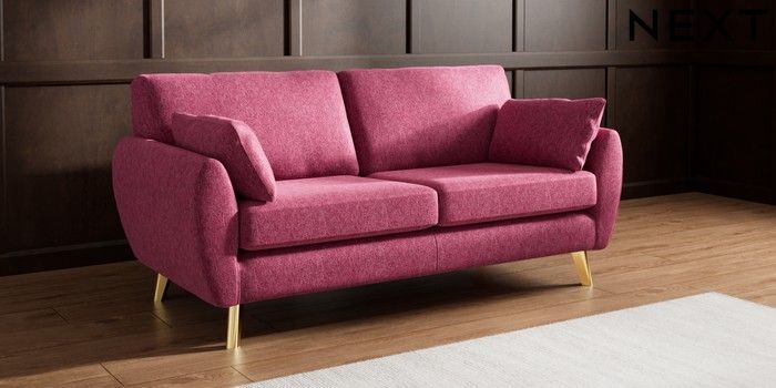 7.3.1 Buy Wilson 3 Seater Small Sofa Cotswold Chenille Dark Raspberry Pink Metal Tapered - Gold from the Seasons online shop Click here to use our website with more accessibility support, for example screen readers