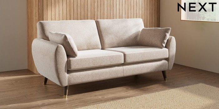 7.3.1 Buy Wilson 3 Seater Small Sofa Cotswold Chenille Light Natural Low Retro Tapered Metal Cap - Mid from the Seasons online shop Click here to use our website with more accessibility support, for example screen readers