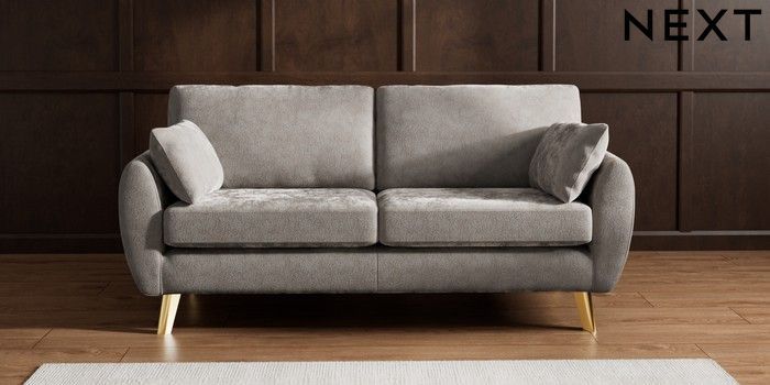 7.3.1 Buy Wilson 3 Seater Small Sofa Distressed Velour French Grey Metal Tapered - Gold from the Seasons online shop