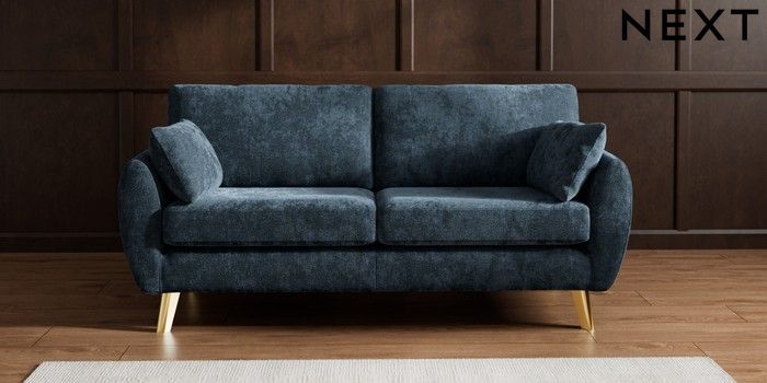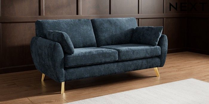 7.3.1 Buy Wilson 3 Seater Small Sofa Distressed Velour Midnight Blue Metal Tapered - Gold from the Seasons online shop Click here to use our website with more accessibility support, for example screen readers