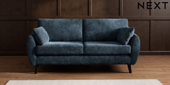 7.3.1 Buy Wilson 3 Seater Small Sofa Distressed Velour Midnight Blue Retro Tapered - Dark from the Seasons online shop Click here to use our website with more accessibility support, for example screen readers