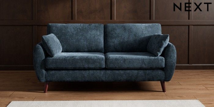 7.3.1 Buy Wilson 3 Seater Small Sofa Distressed Velour Midnight Blue Retro Tapered - Dark Brown from the Seasons online shop Click here to use our website with more accessibility support, for example screen readers