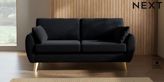7.3.1 Buy Wilson 3 Seater Small Sofa Fine Chenille Easy Clean Black Metal Tapered - Gold from the Seasons online shop Click here to use our website with more accessibility support, for example screen readers