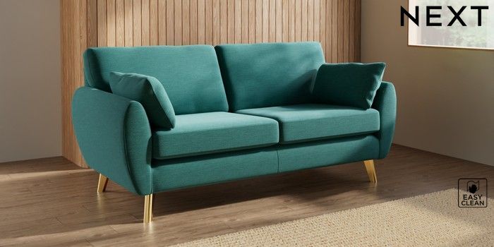 7.3.1 Buy Wilson 3 Seater Small Sofa Fine Chenille Easy Clean Dark Juniper Green Metal Tapered - Gold from the Seasons online shop Click here to use our website with more accessibility support, for example screen readers