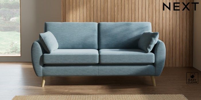 7.3.1 Buy Wilson 3 Seater Small Sofa Fine Chenille Easy Clean Mid Blue Retro Tapered - Light from the Seasons online shop Click here to use our website with more accessibility support, for example screen readers