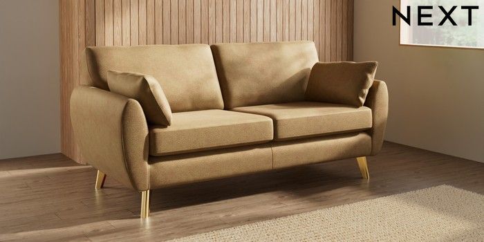 7.3.1 Buy Wilson 3 Seater Small Sofa Luxe Chenille Honey Yellow Metal Tapered - Gold from the Seasons online shop