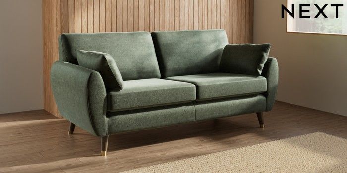 7.3.1 Buy Wilson 3 Seater Small Sofa Luxe Chenille Mid Green Low Retro Tapered Metal Cap - Mid from the Seasons online shop Click here to use our website with more accessibility support, for example screen readers
