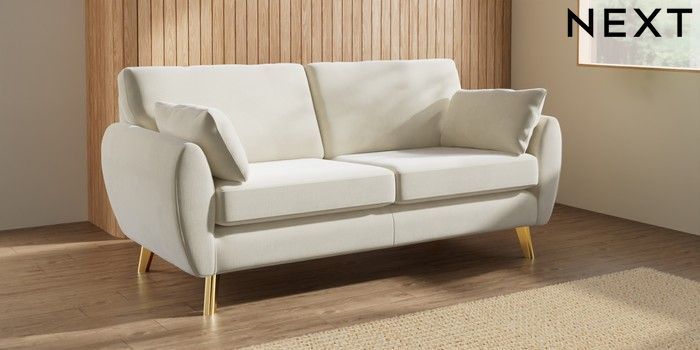 7.3.1 Buy Wilson 3 Seater Small Sofa Luxe Chenille Oyster Metal Tapered - Gold from the Seasons online shop Click here to use our website with more accessibility support, for example screen readers