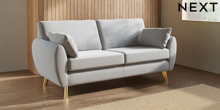 7.3.1 Buy Wilson 3 Seater Small Sofa Natural Mix Light Grey Metal Tapered - Gold from the Seasons online shop Click here to use our website with more accessibility support, for example screen readers