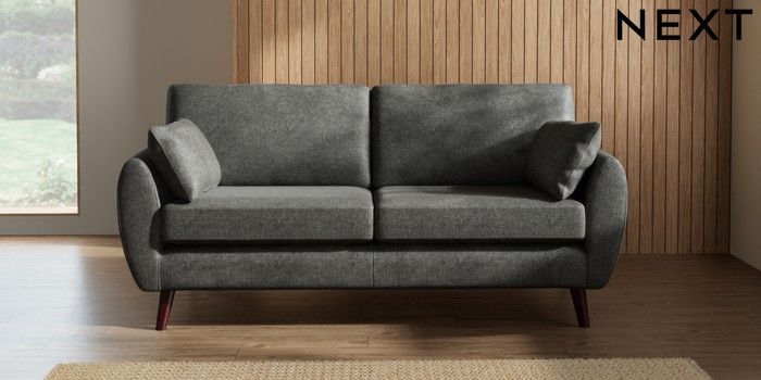 7.3.1 Buy Wilson 3 Seater Small Sofa Plush Chenille Dark Grey Retro Tapered - Dark Brown from the Seasons online shop Click here to use our website with more accessibility support, for example screen readers