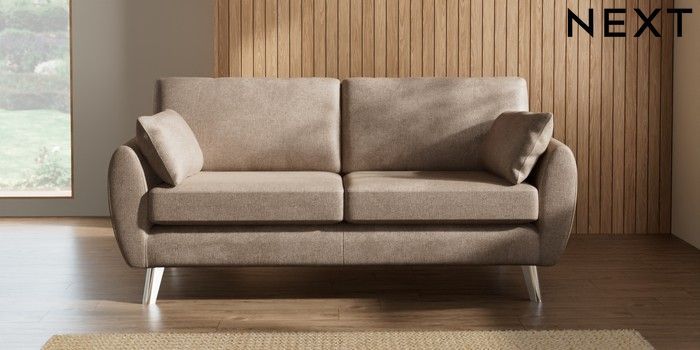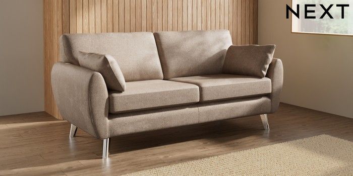 7.3.1 Buy Wilson 3 Seater Small Sofa Plush Chenille Mid Natural Metal Tapered - Chrome from the Seasons online shop Click here to use our website with more accessibility support, for example screen readers