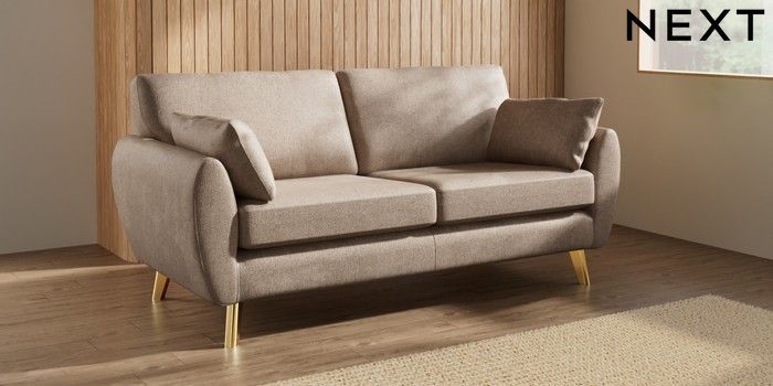 7.3.1 Buy Wilson 3 Seater Small Sofa Plush Chenille Mid Natural Metal Tapered - Gold from the Seasons online shop Click here to use our website with more accessibility support, for example screen readers