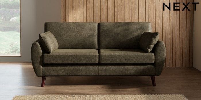 7.3.1 Buy Wilson 3 Seater Small Sofa Plush Chenille Moss Green Retro Tapered - Dark Brown from the Seasons online shop Click here to use our website with more accessibility support, for example screen readers