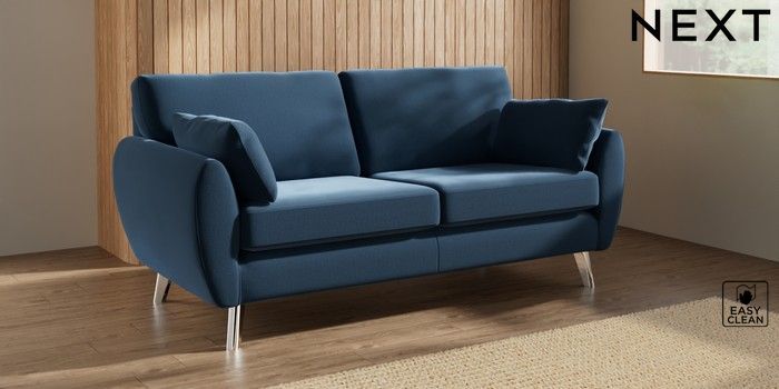 7.3.1 Buy Wilson 3 Seater Small Sofa Plush Velvet Easy Clean Airforce Blue Metal Tapered - Chrome from the Seasons online shop