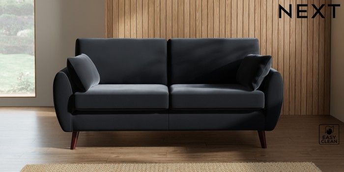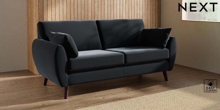 7.3.1 Buy Wilson 3 Seater Small Sofa Plush Velvet Easy Clean Charcoal Grey Retro Tapered - Dark Brown from the Seasons online shop